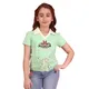 Cutecumber presents this stylish green short sleeve girls T-shirt top designed to deliver comfort, charm, and trend-forward appeal in one versatile outfit. Crafted from premium soft knit fabric, the top ensures breathable wear, lightweight feel, and all-day ease for active kids. The smart collar neckline adds a polished touch, while the playful cartoon applique and vibrant printed design create a fun fashion statement perfect for parties, outings, holidays, and daily wear. The lace-up waist detailing enhances fit and gives a modern silhouette that parents appreciate and kids love. Durable stitching, smooth finishing, and skin-friendly material make it safe for sensitive skin. Easy button closure ensures quick dressing without hassle. Pair effortlessly with jeans, skirts, or shorts for a complete casual chic look. Ideal for summer and all-season indoor styling, this top blends fashion, comfort, and practicality seamlessly.