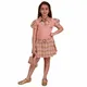 Cutecumber presents a chic peach check dress tailored for young girls who want statement style without sacrificing comfort. This layered V‑neck outfit blends a smart collar detail with a soft knit overlay, creating a modern boutique look. The coordinated belt defines the waist, while gentle pleats and above‑knee length allow easy movement, twirling, and carefree play. Made in a breathable, lightweight check fabric, it suits warm weather, travel, parties, and casual family gatherings. A smooth zip closure enables quick dressing and a secure fit, plus the matching handbag adds charm and practicality for small essentials. Durable stitching and color retention help the garment maintain structure and fresh appearance after repeated use. Perfect for birthdays, festive outings, or stylish day wear, this ensemble offers parents a durable, versatile piece and kids a trendy outfit that feels special for many occasions.